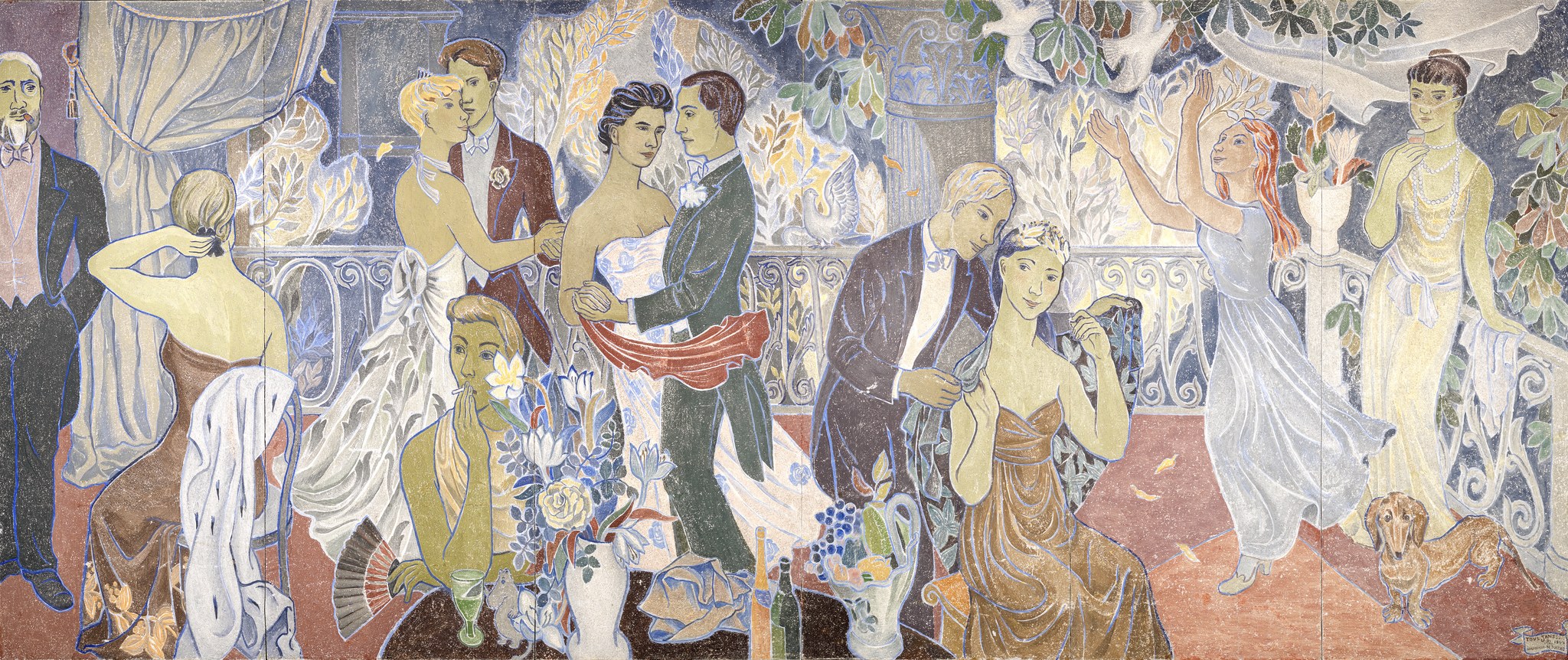 Tove Jansson's fresco Party in the City was painted in 1947. The fresco is contantly on display at the HAM Helsinki Art Museum.